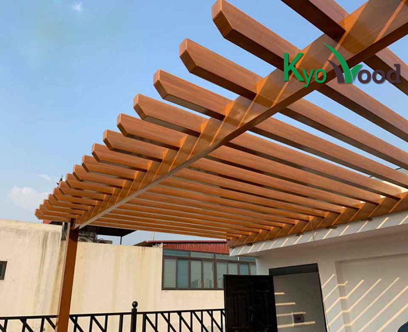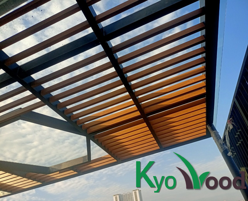 Lam Gỗ gác mái kính - giàn hoa RSFO 2550 được sản xuất trên dây truyền hiện đại nhập khẩu từ Đức đạt chuẩn Châu Âu, nguyên liệu sản xuất từ nhựa PVC nguyên sinh, bột gỗ, vỏ trấu và các phụ gia kết dính. Ngoài ra, Lam gỗ chắn nắng Kyowood còn được phủ lớp sơn đặc biưnệt bảo vệ bề mặt, làm tăng khả năng chịu được thời tiết thay đổi khắc nghiệt ngoài trời
