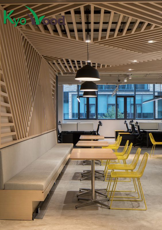 Ứng dụng trong thiết kế nội thất hiện đại cho sảnh chờ khách sạn, không gian nhà hàng sang trọng Lam Gỗ Trang Trí được sử dụng khá nhiều, giúp cho không gian thêm sinh động, gần gũi và ấm áp. Lam gỗ trang trí không chỉ được sử dụng cho trần, mà còn được sử dụng cho cả mảng tường hoặc vách ngăn trang trí tạo không gian vừa riêng rẽ nhưng lại thông thoáng và gần gũi